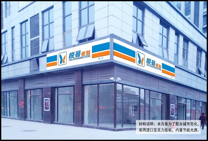 雅創空間成功服務悅克便利連鎖超市100余家門頭及亮化工程,現已圓滿完成任務,悅客便利是以便民、快捷服務性為宗旨得便利店。擁有全新的管理模式,完善的技術,周到的服務,卓越的品質。此次門頭及亮化工程的合作得到了悅客領導層的一致認可和稱贊。